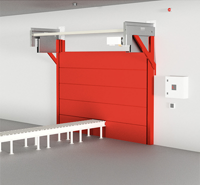 Various production and logistics processes call for the most diverse types of conveyor systems. If these conveyor lines pass through fire-retardant or fire-resistant walls or ceilings, the openings required for this purpose must be provided with fire protection closures to prevent the spread of fire through the conveyor system or the goods conveyed. In the event of fire, conveyor system closures (CSC for short) must close these openings immediately and automatically. Fire resistance classified according to DIN EN 13501-2 is just as important as the smooth clearance of the closing areas in the event of a fire.